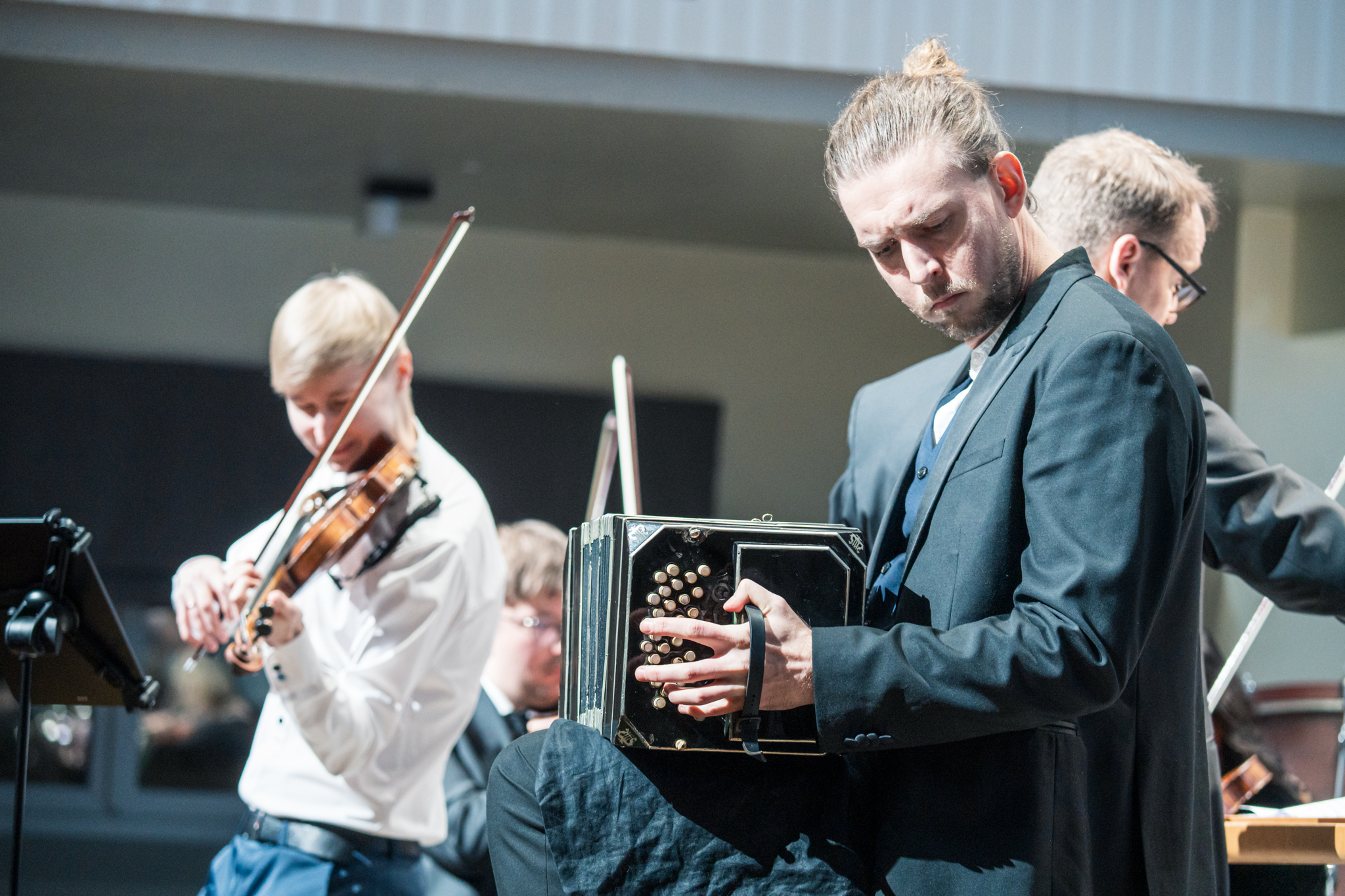 Bandooniumimängija Kaspar Uljas võttis teatepulga õhtujuhtidelt üle. Temaga liitus viiulimängija Hans Christian Aavik ja lõpuks ka Tallinna Kammerorkester.